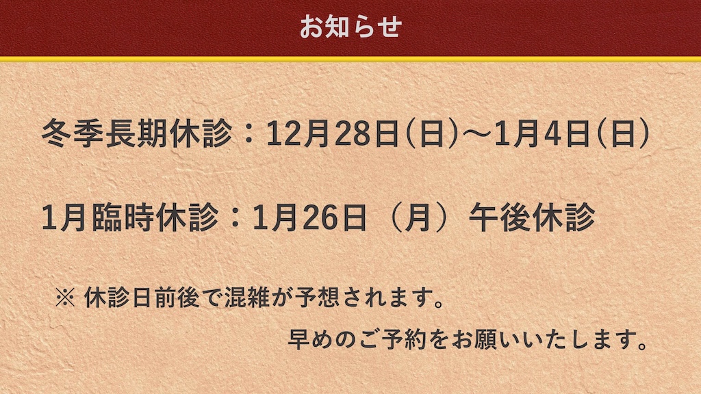 年末年始の長期休診についてお知らせします。